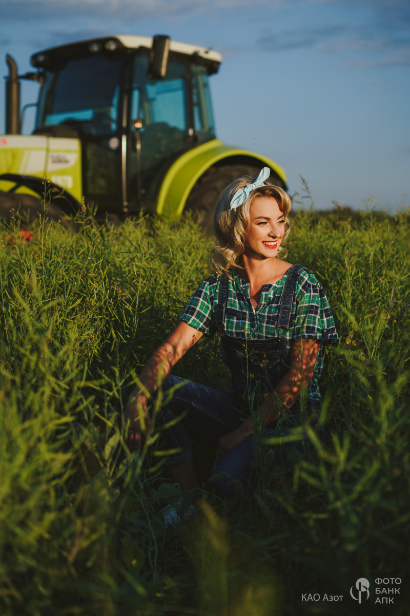 Фотосессия проводилась в рамках подготовки корпоративного календаря КАО "Азот"- 2024 "Красота химии". В календаре мы хотели рассказать о применении продукции предприятия через женские образы. Эта фотосессия об основном применении продукции завода - удобрение сельскохозяйственных почв. Образ модели - дерзкая трактористка в стиле пин-ап. Кстати, это наша работница и она работает как раз-таки на производстве аммиачной селитры.
