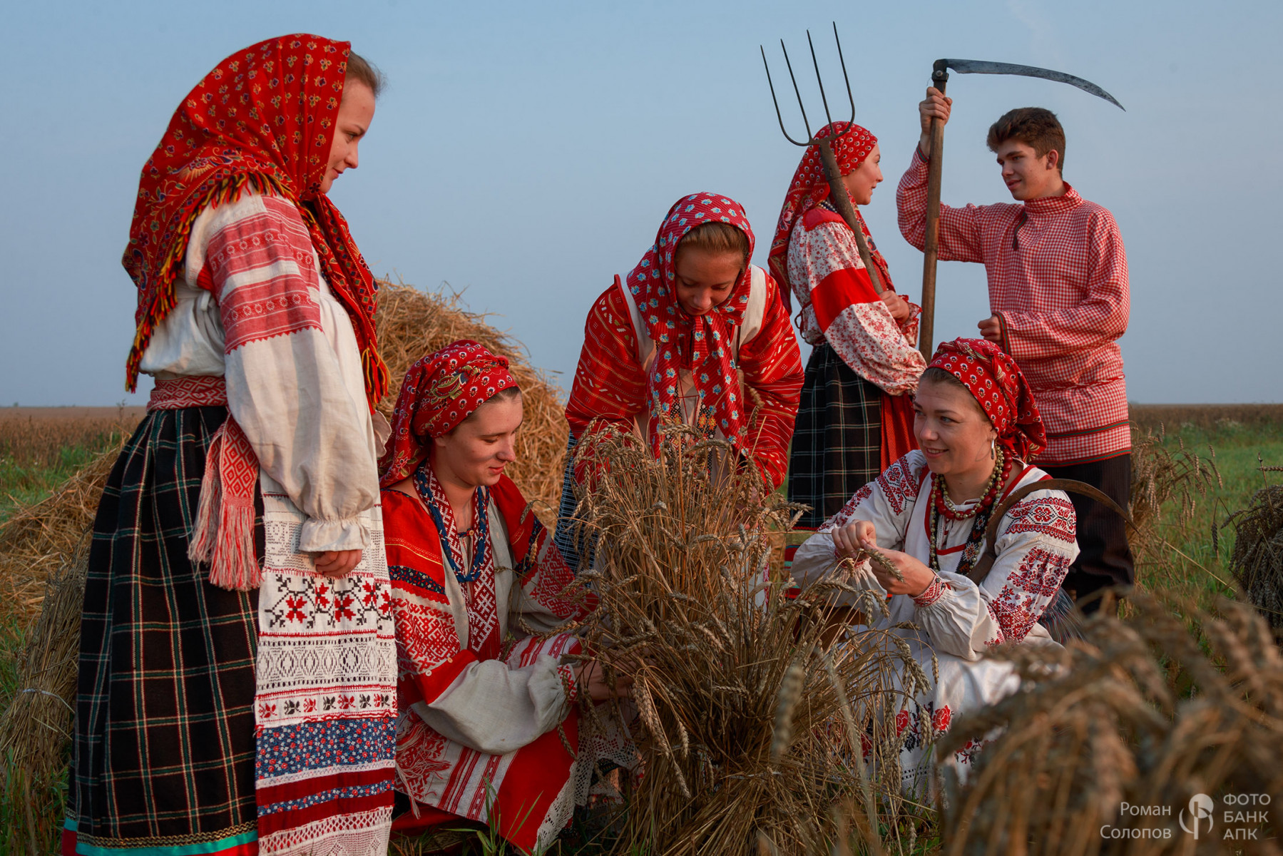 Ансамбль "Вереница" обыграл сбор полбы на поле рядом с музеем Куликовской битвы. Участники фольклорного коллектива в традиционных тульских костюмах конца XIX века аккуратно срезают колосья пшеницы с помощью старинных серпов. Каждая деталь их одежды, от вышивки на рубахах до узорчатых поясов, отражает богатую культуру русского народа, уходящую корнями в глубину веков. Ручная уборка зерна – это не просто работа, а настоящий ритуал. Он напоминает о важности связи с землей, о необходимости уважать природу и её дары. Возрождение таких традиций помогает нам лучше понять наших предков, их мудрость и умение жить в ладу с природой. Это важный шаг к сохранению культурного наследия нашей страны и укреплению связи между поколениями.